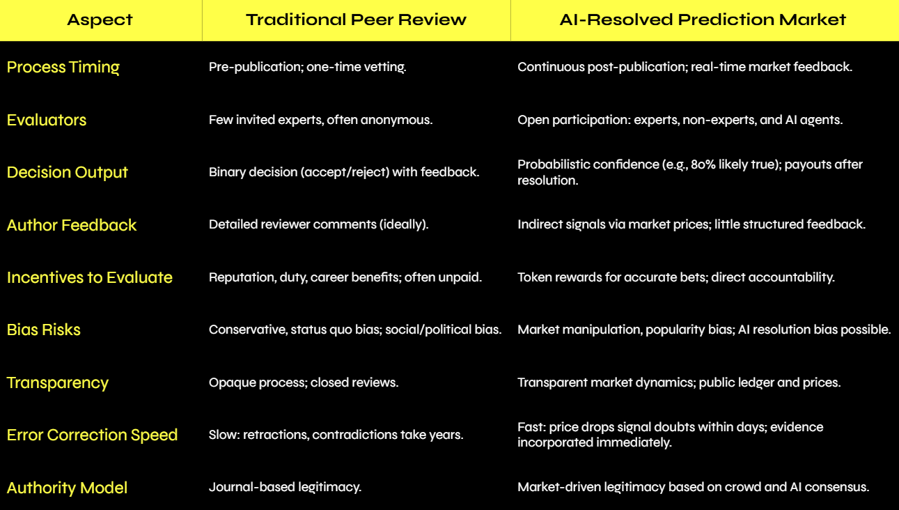 Traditional Peer Review vs. AI-Resolved Market-Based Validation